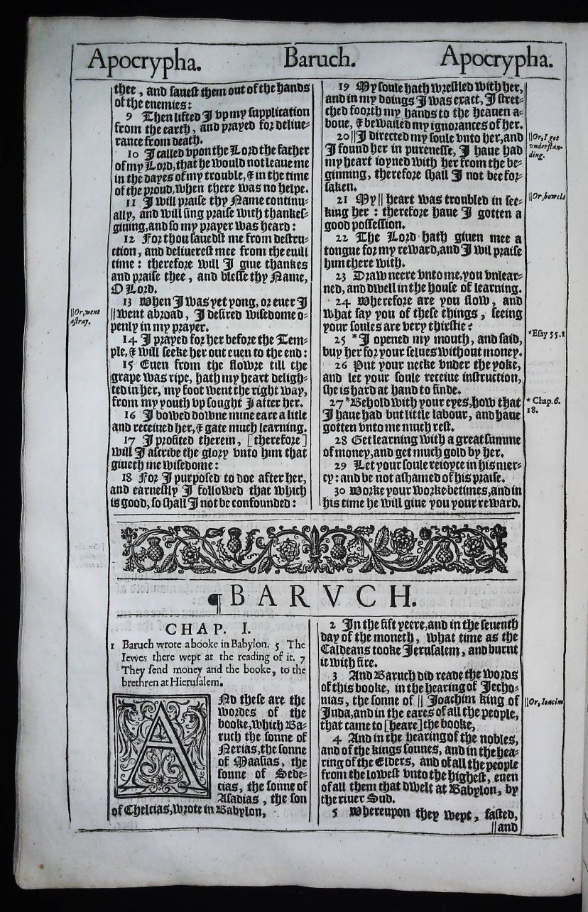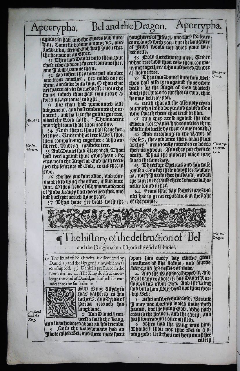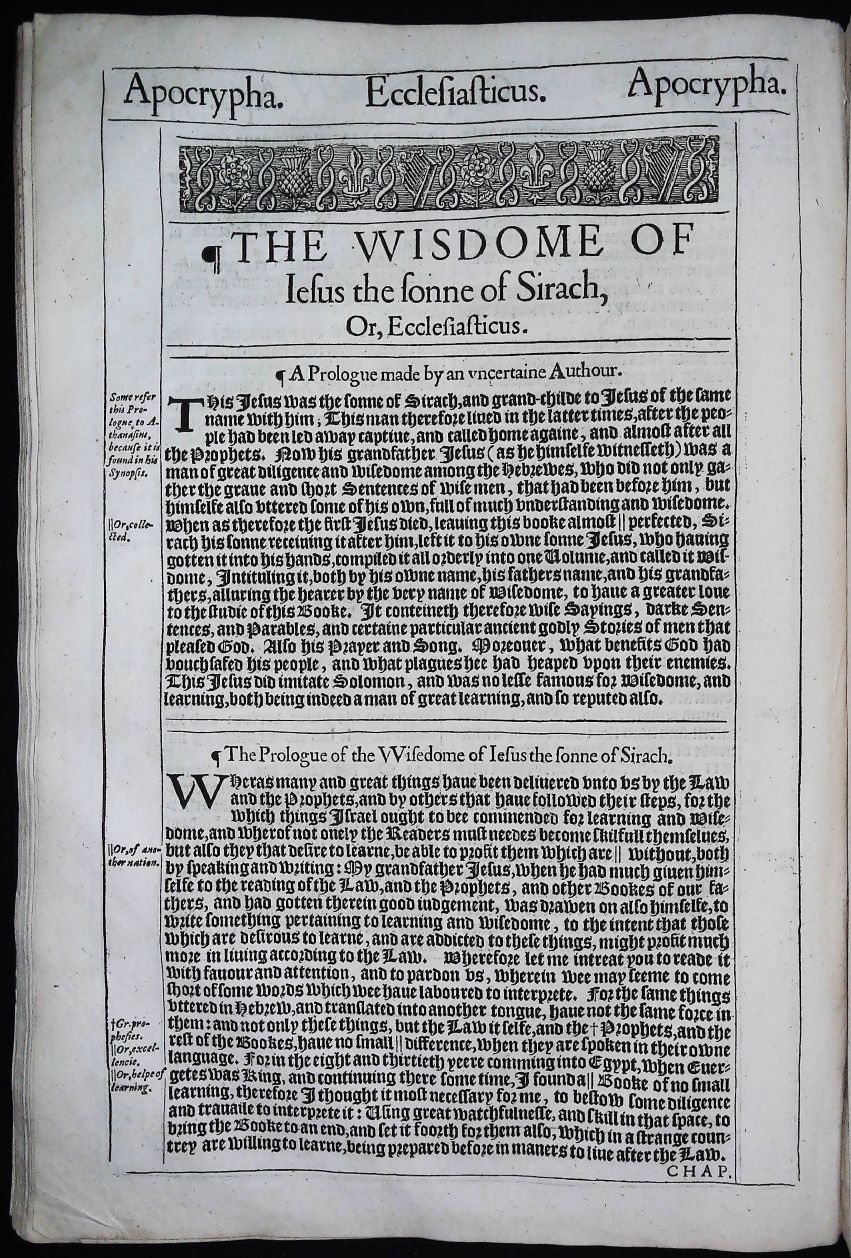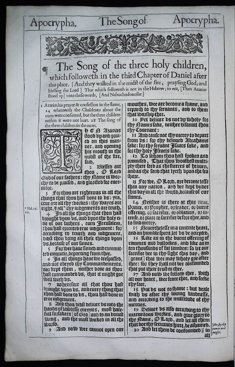 We also have a limited quantity of Apocrypha leaves available from the 1613 second issue Great She Bible. Please contact us for details….